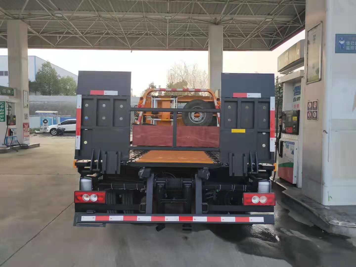 上裝配置:平板采用3P2A沖壓鋼板,具有更加出眾的平衡性,平板長4.2米,寬2.3米。背3噸,拖3噸。多路閥平衡閥采用意大利原裝(海德)進口;液壓缸佛山(海戰力)采用德國技術,雙層鋼絲液壓膠管,全進口密封圈。分體模壓拼焊面板,耐磨、防滑抗阻力強。雙側聯動操作系統,后工作燈2只,一個4噸液壓絞盤(25米鋼絲繩)一個洗手箱,2個小車,L型抱胎架1對,4根捆綁帶,后隱藏液壓伸縮式尾板,或尾部翻轉(可定做中間加長0.5米),可伸出長度為1.1米,應對較長車型的SUV和越野車型。上裝所有液壓元件均采用進口部件,可選裝國產件。